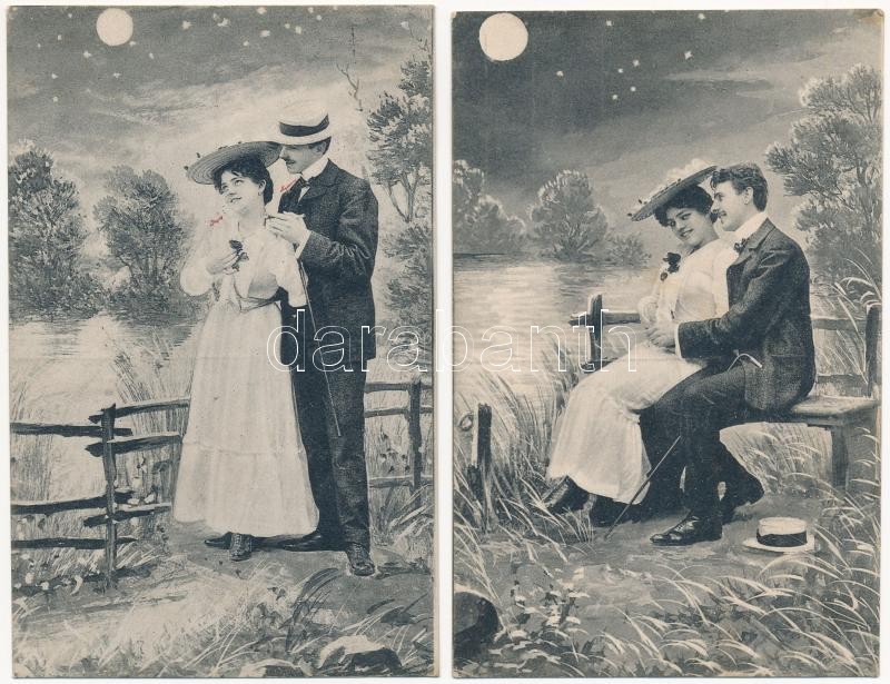 6 db RÉGI romantikus motívum képeslap vegyes minőségben: szerelmes páros sorozat / 6 pre-1908 romantic motive postcards in mixed quality: couples in love series