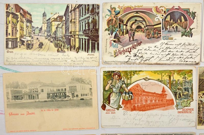 Kb. 100 db RÉGI hosszú címzéses osztrák város képeslap vegyes minőségben, lithokkal / Cca. 100 pre-1910 Austrian town-view postcards in mixed quality, with lithos
