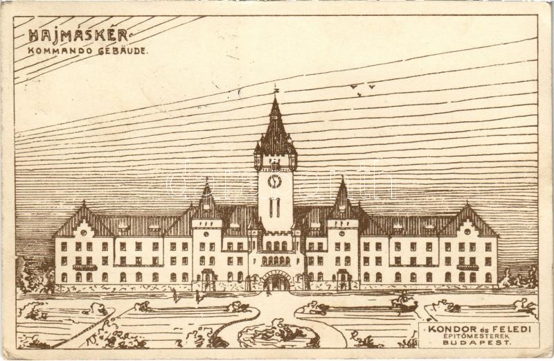 1908 Hajmáskér, Kommando Gebäude / Parancsnoksági épület. Kondor és Fe... https://www.darabanth.com/hu/423-Gyorsarveres/423.0/Kepeslapok/Magyarorszag~1500004/1908-Hajmasker-Kommando-Gebaude-Parancsnoksagi-epulet-Kondor-es-Feledi-epitomesterek~II2690013