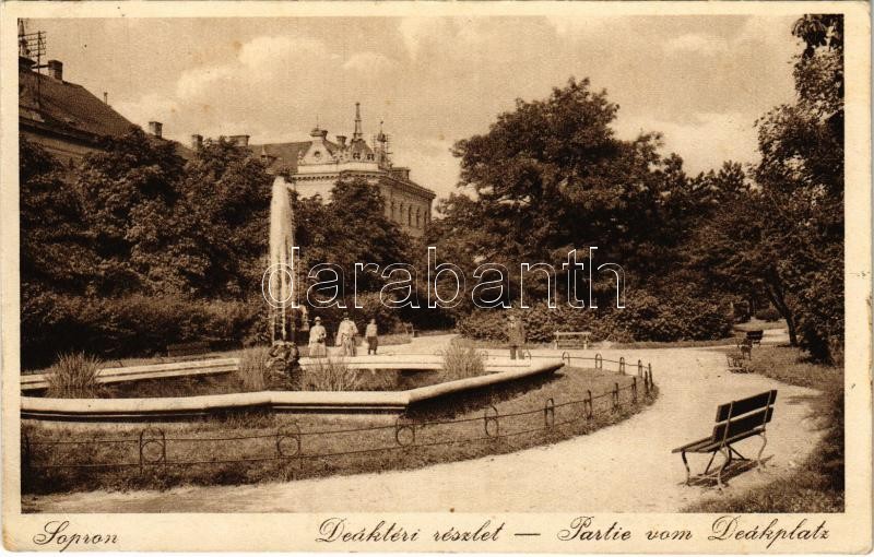 1934 Sopron, Deák téri részlet, szökőkút (EK) https://www.darabanth.com/hu/423-Gyorsarveres/423.0/Kepeslapok/Magyarorszag~1500004/1934-Sopron-Deak-teri-reszlet-szokokut-EK~II2687777