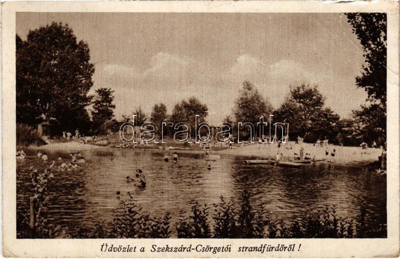 1950 Szekszárd, Csörge-tó strandfürdő, fürdőzők. Gauzer kiadása (EB) https://www.darabanth.com/hu/423-Gyorsarveres/423.0/Kepeslapok/Magyarorszag~1500004/1950-Szekszard-Csorge-to-strandfurdo-furdozok-Gauzer-kiadasa-EB~II2689230