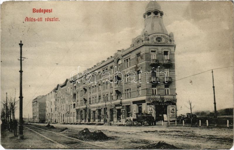 Leírás: Budapest XI. Átlós út (Bartók Béla út), Kohn J. Gyula és Molnár József üzlete, villamossín, bor, sör és pálinka (Rb)