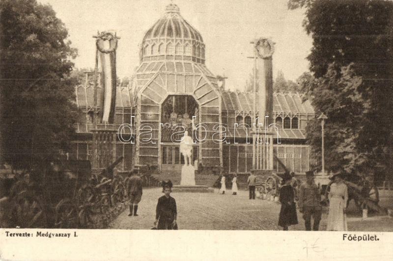 Leírás: Budapest XIII. Margitsziget, József főherceg erdélyi hadikiállítása; Főépület, tervezte Medgyaszay I. (EK)