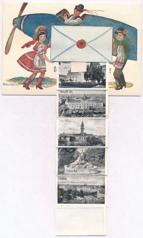 Leírás: Hódmezővásárhely. Repülős népviseletes leporellolap / Folklore aircraft leporellocard s: Bernáth