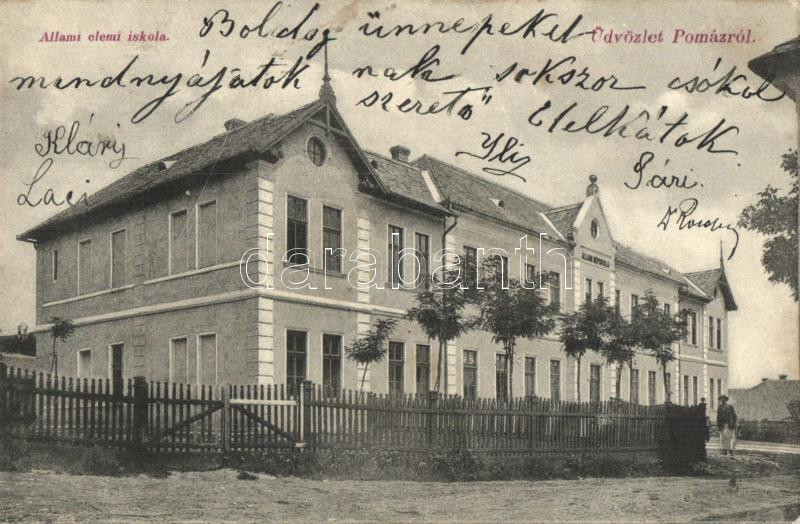 Leírás: Pomáz, Állami elemi iskola; kiadja Schwartz János