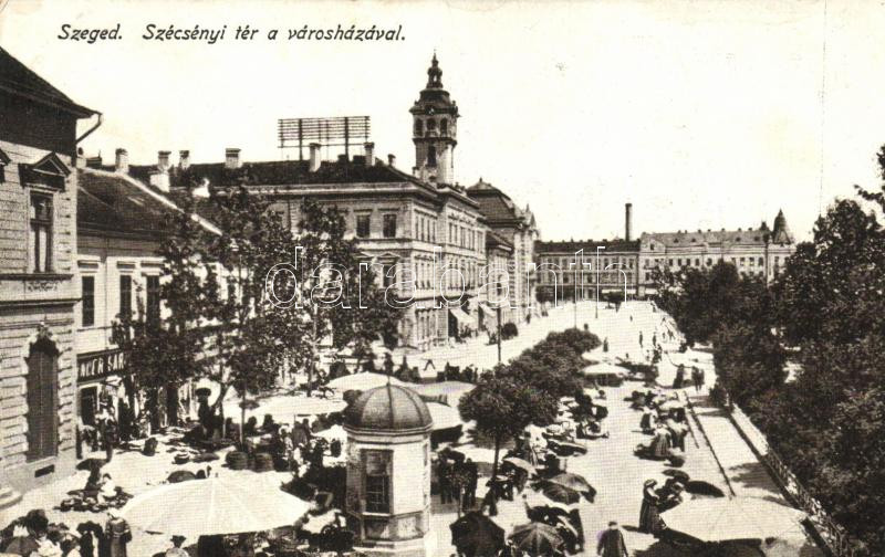 Leírás: Szeged, Széchenyi tér, városháza, piac