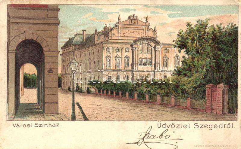 Szeged, Városi színház, Kosmos litho (EK) https://www.darabanth.com/hu/423-Gyorsarveres/423.0/Kepeslapok/Magyarorszag~1500004/Szeged-Varosi-szinhaz-Kosmos-litho-EK~II979802