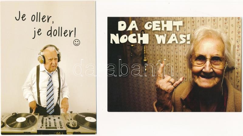 Leírás: 19 db MODERN használatlan humoros képeslap idős emberekkel / 19 modern unused humorous postcards with old people