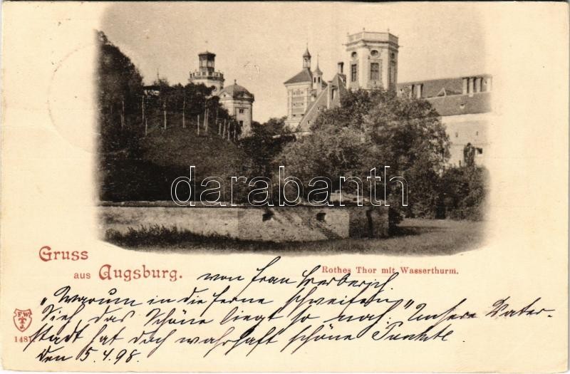 Leírás: 1898 (Vorläufer) Augsburg, Rotes Tor mit Wasserturm / gate, water tower (EK)