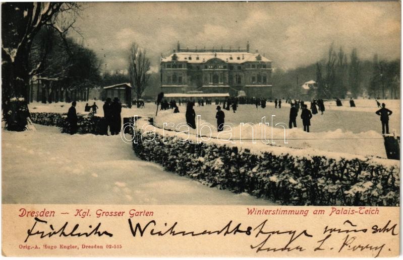 1904 Dresden, Kgl. Grosser Garten, Winterstimmung am Palais Teich https://www.darabanth.com/hu/423-Gyorsarveres/423.0/Kepeslapok/Nemetorszag~1500043/1904-Dresden-Kgl-Grosser-Garten-Winterstimmung-am-Palais-Teich~II2687951
