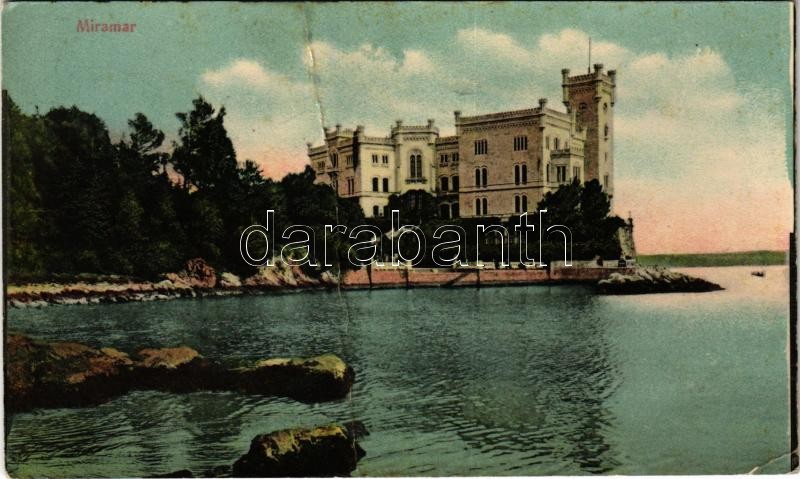 1909 Trieste, Trieszt; Miramar / castle (fa) https://www.darabanth.com/hu/423-Gyorsarveres/423.0/Kepeslapok/Olaszorszag~1500044/1909-Trieste-Trieszt-Miramar-castle-fa~II2687149