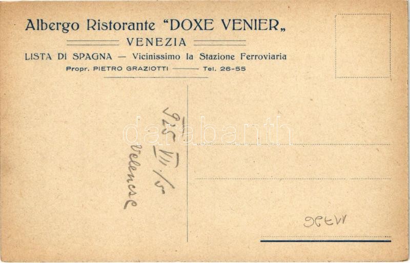 Leírás: 1925 Venezia, Venice; Albergo Restaurant Doxe Venier. Art Nouveau