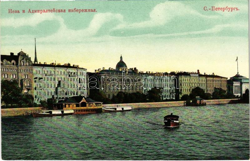 Leírás: Saint Petersburg, St. Petersbourg, Leningrad, Petrograd; Le Newa. Le Quai de l'Amirauté / Neva riverside