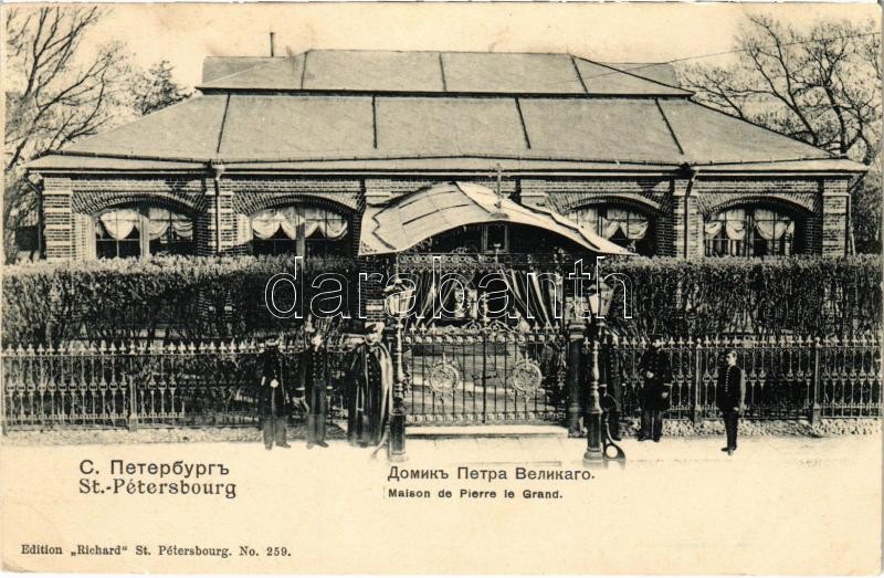 Leírás: Saint Petersburg, St. Petersbourg, Leningrad, Petrograd; Maison de Pierre le Grand / Cabin of Peter the Great, palace with guards (EK)