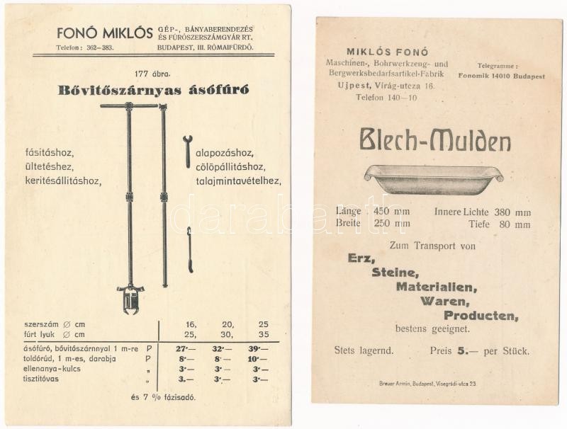Fonó Miklós gép-, bányaberendezés és fúrószerszámgyár rt. - 2 db régi ... https://www.darabanth.com/hu/423-Gyorsarveres/423.0/Kepeslapok/Reklam~1500083/Fono-Miklos-gep-banyaberendezes-es-furoszerszamgyar-rt-2-db-regi-reklam-kepeslap~II2593794