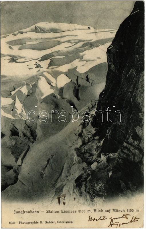 1905 Jungfraubahn, Station Eismeer, Blick auf Mönch (EK) https://www.darabanth.com/hu/423-Gyorsarveres/423.0/Kepeslapok/Svajc~1500049/1905-Jungfraubahn-Station-Eismeer-Blick-auf-Monch-EK~II2686228