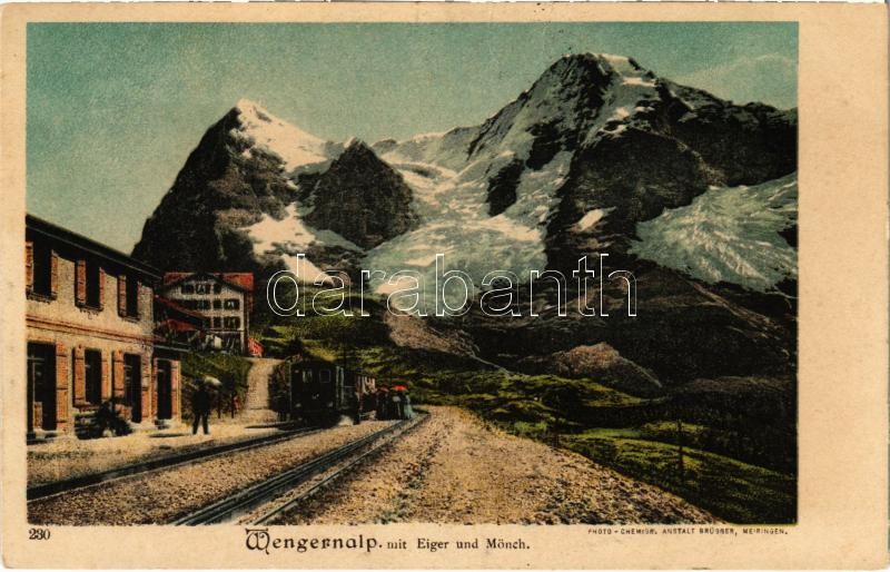 Wengernalp mit Eiger und Mönch, Bahnhof / railway station, train (fa) https://www.darabanth.com/hu/423-Gyorsarveres/423.0/Kepeslapok/Svajc~1500049/Wengernalp-mit-Eiger-und-Monch-Bahnhof-railway-station-train-fa~II2689716