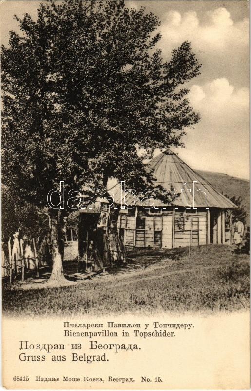 Leírás: Belgrade, Beograd; Bienenpavillon in Topschider / Topcider, beekeeping pavilion / méhész pavilon