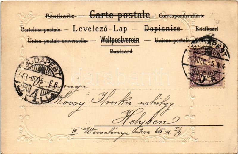 1901 Litho greeting card, Emb. frame (b) https://www.darabanth.com/hu/423-Gyorsarveres/423.0/Kepeslapok/Udvozlolapok-Unnepek~1500093/1901-Litho-greeting-card-Emb-frame-b~II2686561