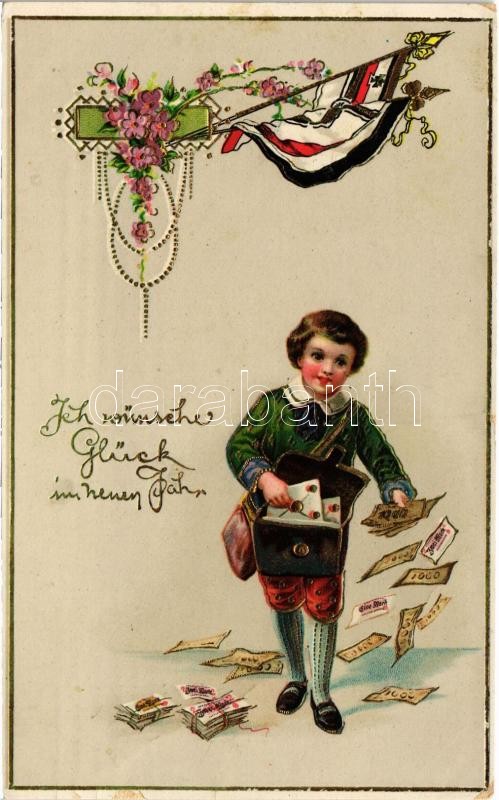 1916 Ich wünsche Glück im neuen Jahr / New Year greeting art postcard ... https://www.darabanth.com/hu/423-Gyorsarveres/423.0/Kepeslapok/Udvozlolapok-Unnepek~1500093/1916-Ich-wunsche-Gluck-im-neuen-Jahr-New-Year-greeting-art-postcard-with-German-flag-EAS-litho~II2691535