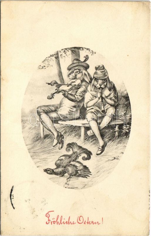 Fröhliche Ostern! / Easter greeting art postcard with musician rabbits... https://www.darabanth.com/hu/423-Gyorsarveres/423.0/Kepeslapok/Udvozlolapok-Unnepek~1500093/Frohliche-Ostern-Easter-greeting-art-postcard-with-musician-rabbits-EK~II2670913