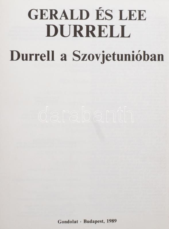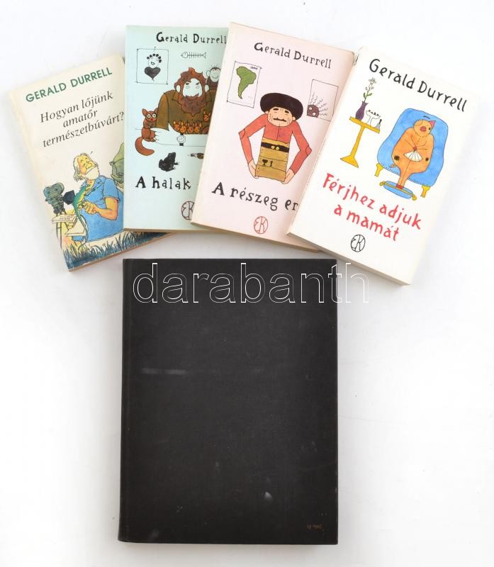 5 db könyv: Gerald Durrell: Férjhez adjuk a mamát; A részeg erdő; A halak jelleme; Hogyan lőjünk amatőr természetbúvárt? + Gerald és Lee Durrell: Durrell a Szovjetunióban.