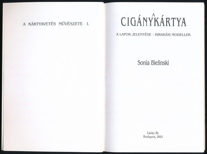 Sonia Bielinski: A cigánykártya. A lapok jelentése - Kirakási modellek... https://www.darabanth.com/hu/423-Gyorsarveres/423.0/Konyvek/Konyvek-Egyeb-ritkasagok~2000023/Sonia-Bielinski-A-ciganykartya-A-lapok-jelentese-Kirakasi-modellek-A-kartyavetes-muvesz~II2689550