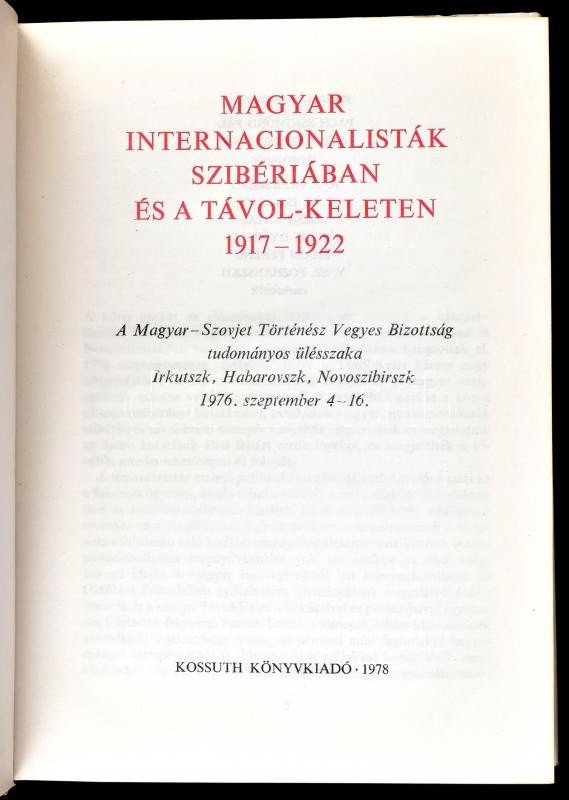 Magyar internacionalisták Szibériában és Távol-Keleten 1917-1922. Szerk.: Pach Zsigmond Pál, A. P. Okladnyikov. Bp., 1978., Kossuth. Kiadói kartonált papírkötés, kiadói papír védőborítóban. Megjelent 2500 példány.