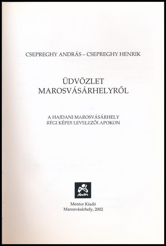 Csepreghy András - Csepreghy Henrik: Üdvözlet Marosvásárhelyről. A hajdani Marosvásárhely régi képes levelezőlapokon. Marosvásárhely, 2002., Mentor. Gazdag képanyaggal illusztrált. Kiadói kartonált papírkötés, kiadói papír védőborítóban.