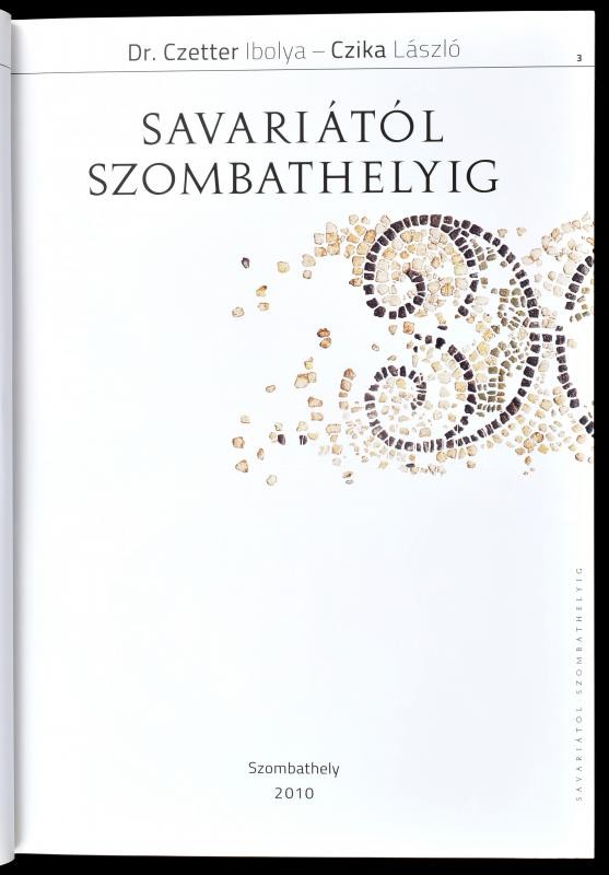 Leírás: Czetter Ibolya-Czika László: Savariától Szombathelyig. Írta és szerk.: Czetter Ibolya. Czika László fotóival. Szombathely, 2010., LogoMotív Kreatív Műhely. Gazdag képanyaggal illusztrált. Kiadói kartonált papírkötés. Megjelent 3000 példányban.