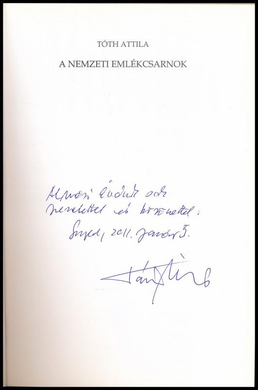 Tóth Attila: A nemzeti emlékcsarnok. A szerző által DEDIKÁLT példány. Szeged, 2009., Szeged Megyei Jogú Város Önkormányzata. Gazdag képanyaggal illusztrált. Kiadói papírkötés.