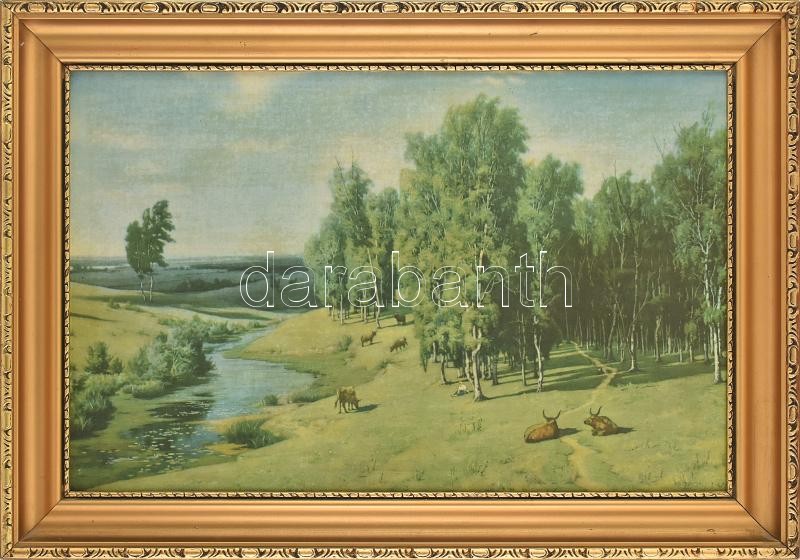 Leírás: Dekoratív, aranyozott fa keret, benne vászonnyomattal, 60x38,5 cm, külső méret: 72,5x50,5 cm