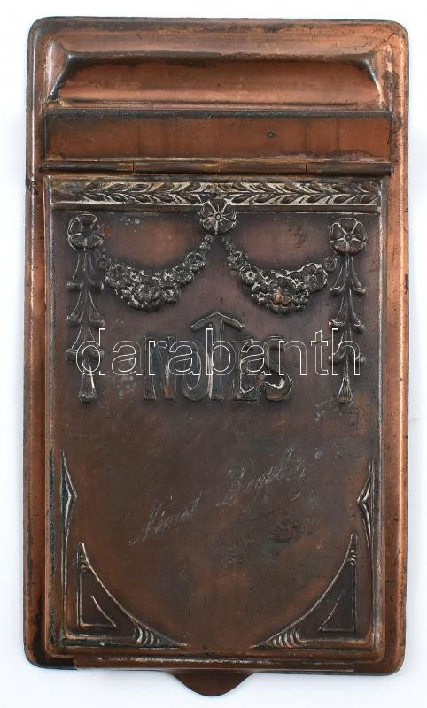 Leírás: Szecessziós réz notesztartó, kopásnyomokkal, 16x9 cm