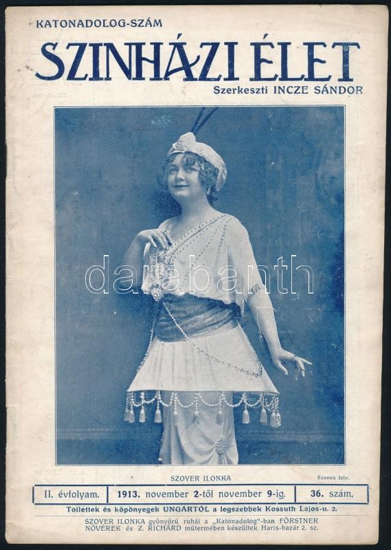 1913 A Színházi Élet II. évfolyamának 36. száma, 32p https://www.darabanth.com/hu/423-Gyorsarveres/423.0/Mutargy-papirregiseg-egyeb/Nyomtatvanyok~2000002/1913-A-Szinhazi-Elet-II-evfolyamanak-36-szama-32p~II2687542
