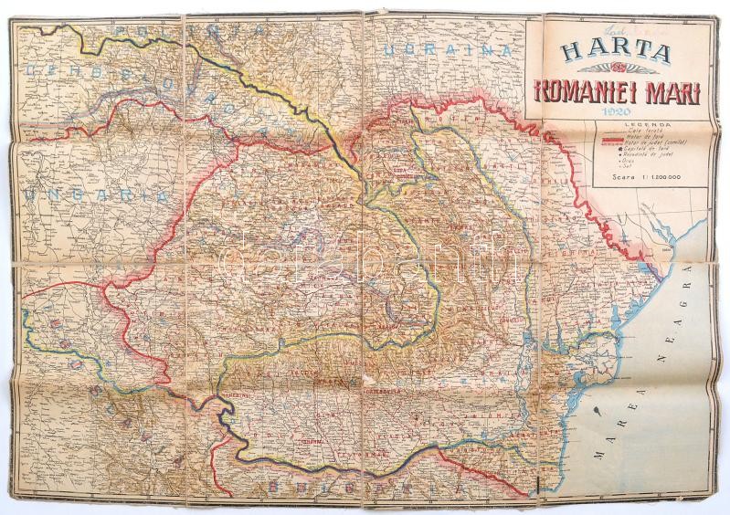 1920 Harta Romaniei Mari / Nagy-Románia térképe, vászontérkép, 1 : 1.2... https://www.darabanth.com/hu/423-Gyorsarveres/423.0/Mutargy-papirregiseg-egyeb/Terkepek~53/1920-Harta-Romaniei-Mari-Nagy-Romania-terkepe-vaszonterkep-1-1200000-utolagos-szine~II2687588
