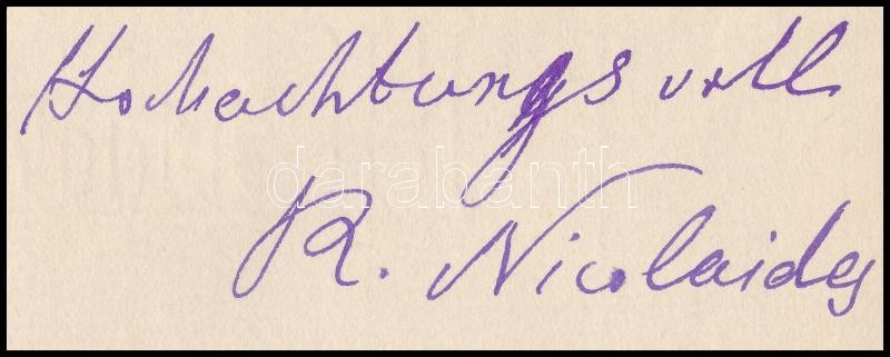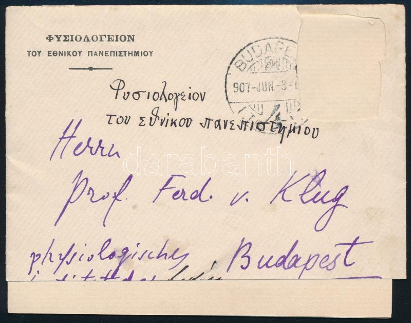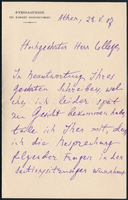 Leírás: 1907 R. Nikolaides görög pszichológus levele Klug Ferdinánd professzorhoz