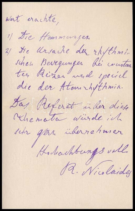 1907 R. Nikolaides görög pszichológus levele Klug Ferdinánd professzor... https://www.darabanth.com/hu/423-Gyorsarveres/423.0/Mutargy-papirregiseg-egyeb/Tortenelmi-dokumentumok-keziratok-erdekessegek~42/1907-R-Nikolaides-gorog-pszichologus-levele-Klug-Ferdinand-professzorhoz~II2692016