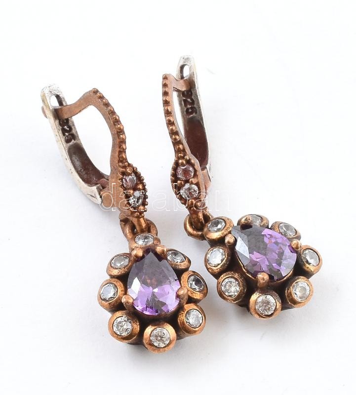 Leírás: Ezüst (Ag) köves fülbevaló, jelzett, bruttó: 6,52g