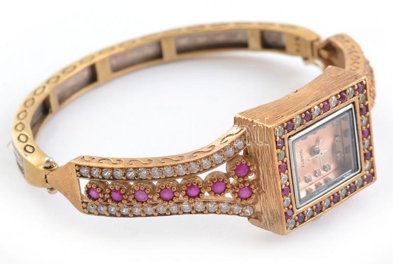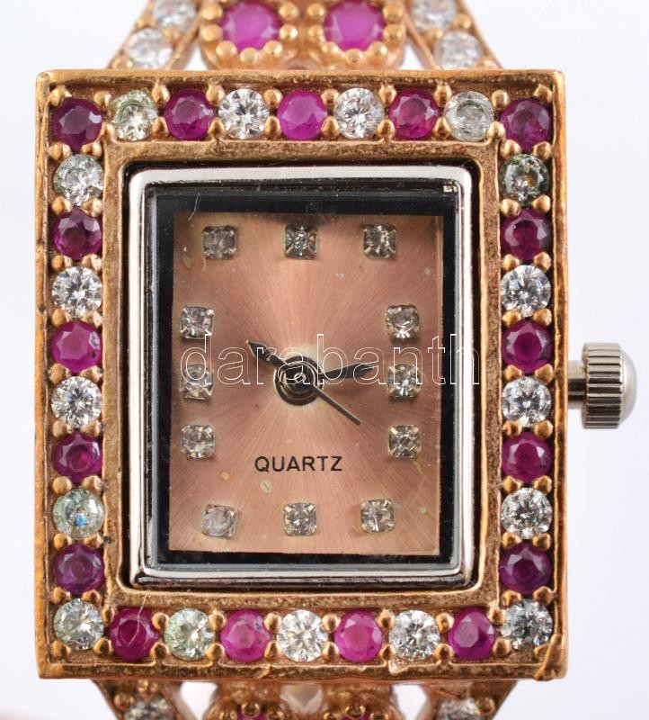 Leírás: Ezüst (Ag) női, köves, karpereces karóra, quartz, működik, d: 6cm, jelzett, bruttó:33,28g