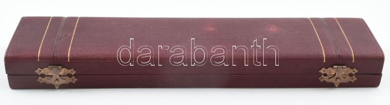 Leírás: Ezüst (Ag) nyelű tortakés dobozban, jelzett, h: 27 cm, bruttó: 89g