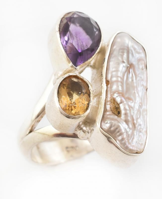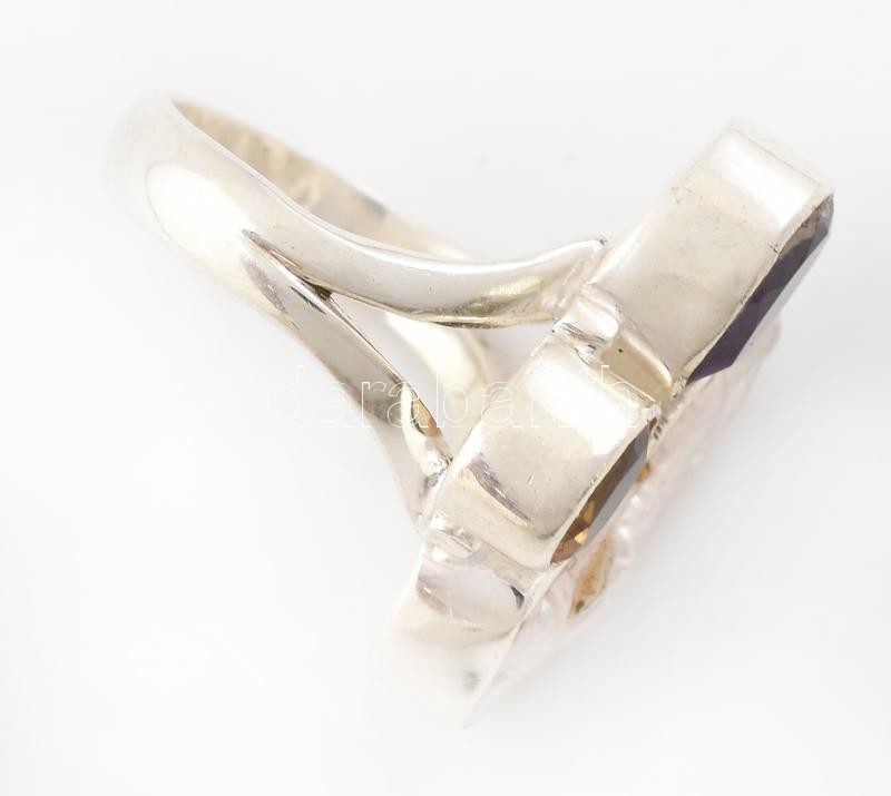 Leírás: Ezüst(Ag) gyűrű gyöngyház, citrin és ametiszt díszítéssel, jelzett, méret: 53, bruttó: 7,86 g