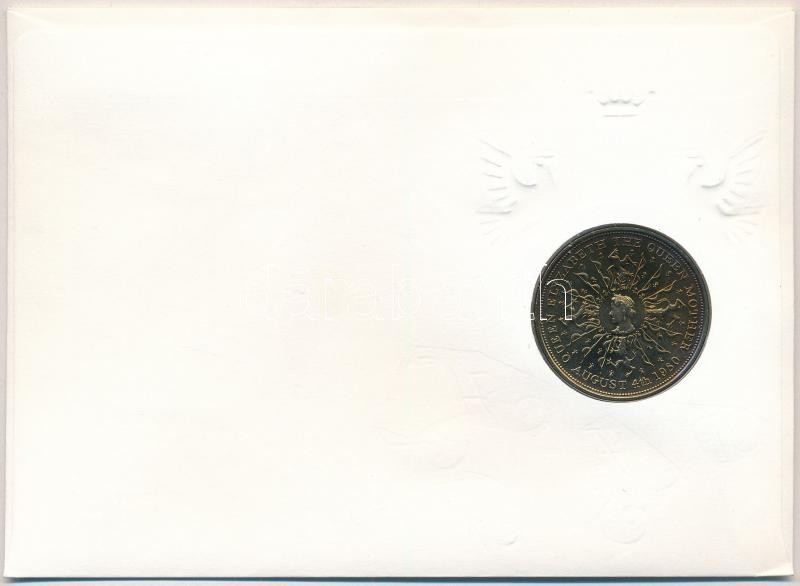 Nagy-Britannia 1980. 25p Cu-Ni "Erzsébet anyakirályné 80. születésnapja" érmés borítékban, bélyeggel és bélyegzéssel T:1,1- Great Britain 1980. 25 Pence Cu-Ni "80th birthday of Queen Elizabeth the Queen Mother" in coin envelope with stamps and cancellations C:UNC,AU Krause KM#921