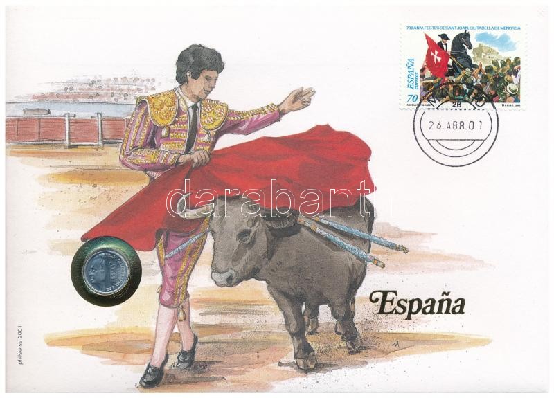 Spanyolország 1998. 1P felbélyegzett borítékban, bélyegzéssel, német nyelvű leírással T:1 Spain 1998. 1 Peseta in envelope with stamp and cancellation, with German description C:UNC