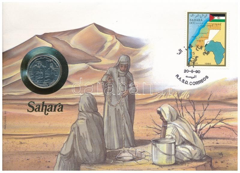 Szaharai Arab Demokratikus Köztársaság 1990. 50p Cu-Ni felbélyegzett borítékban, bélyegzéssel, német nyelvű leírással T:1 Sharawi Arab Democratic Republic 1990. 50 Pesetas Cu-Ni in envelope with stamp and cancellation, with German language description C:UNC