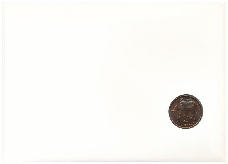 Saint Helena 1984. 2 Pence in envelope with stamp and cancellation, with German description C:UNC