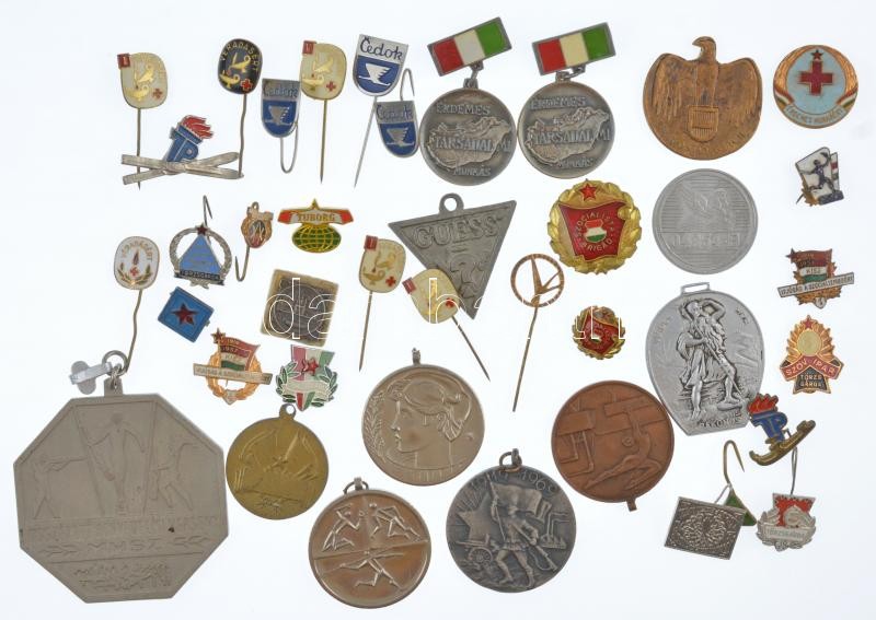 Leírás: 40 db-os vegyes magyar, külföldi jelvény és emlékérme tétel, közte "Véradásért" (6x) fém kitűző T:2,2-