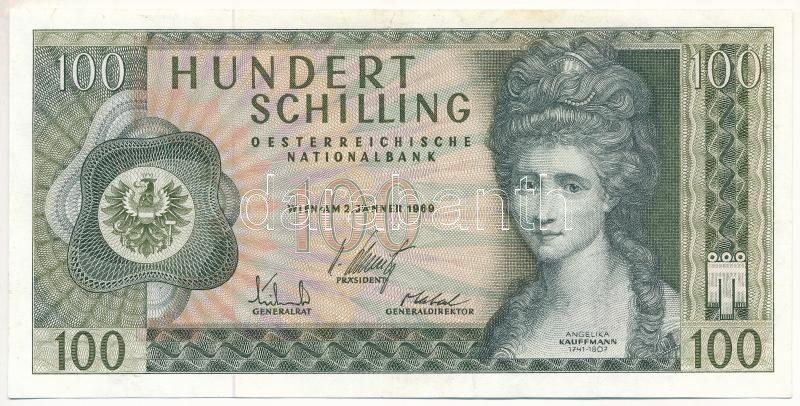 Leírás: Ausztria 1969. (1970). 100Sch T:III kis beszakadás de szép papír