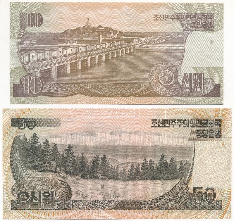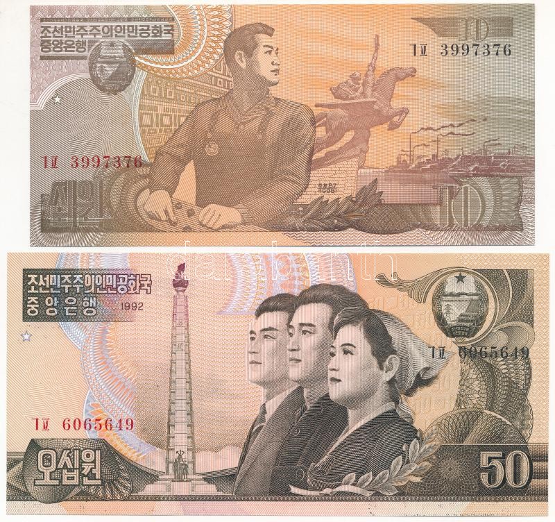 North Korea 1992. 50 Won "6065649" + 1998. 10 Won "3997376" C:UNC