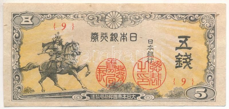 Krause P#52 https://www.darabanth.com/hu/423-Gyorsarveres/423.0/Numizmatika/Kulfoldi-bankjegyek~6000014/Japan-1944-5s-TIII-Japan-1944-5-Sen-CF-Krause-P2352~II2688543