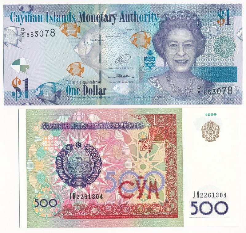 Leírás: Kajmán-szigetek 2014. 1$ "D/5 583078" + Üzbegisztán 1999. 500S "JN 2261304" T:I,I-